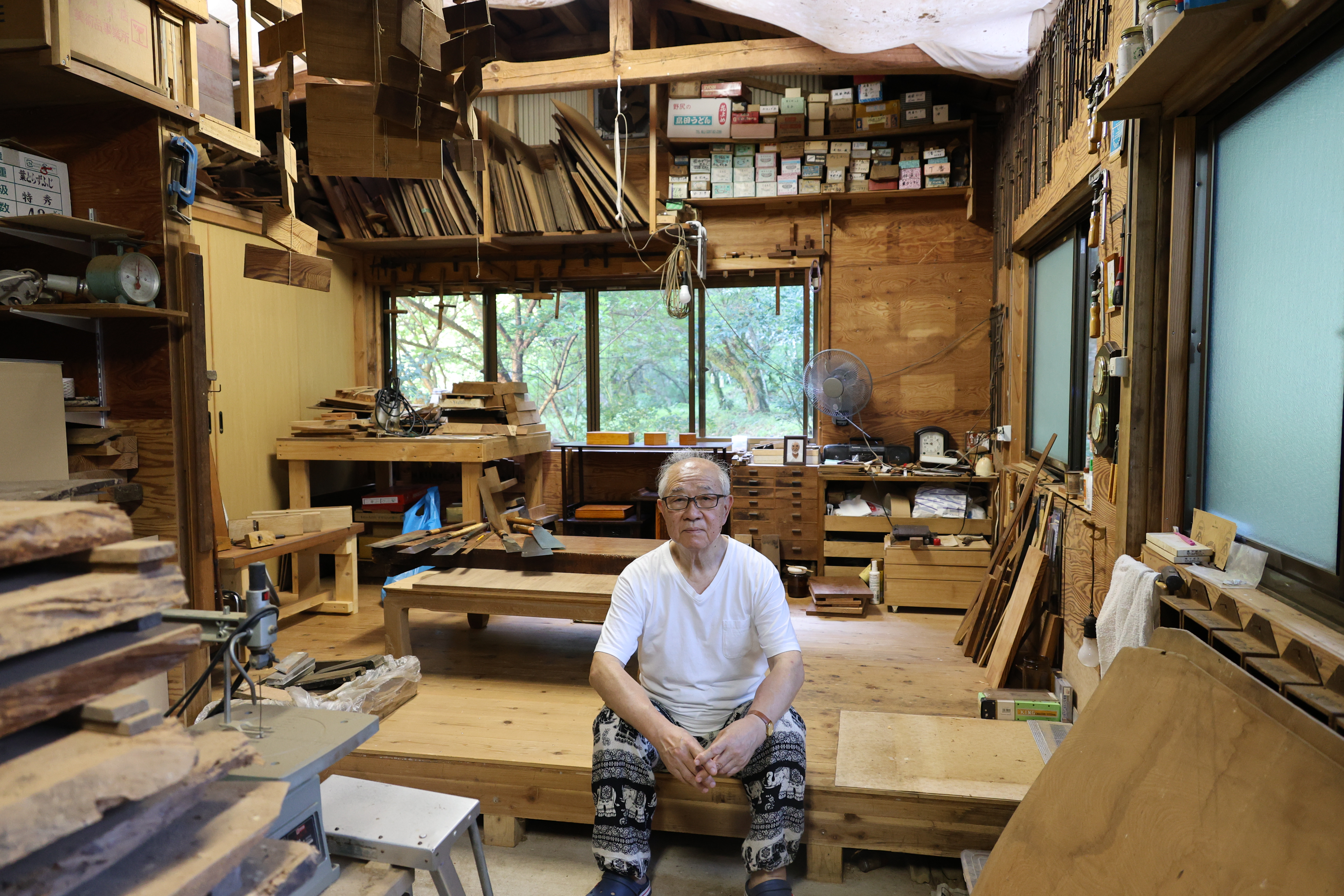 撮影場所として実際の工房を貸してくださった下田脂松細工職人の嶋崎さん